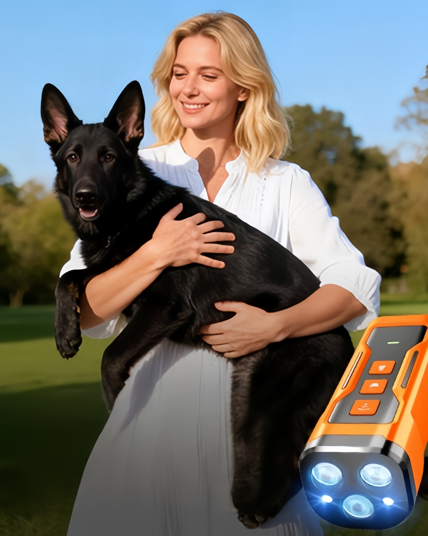 Works great! Easy to use, effective at stopping barking, & the flashlight is a nice bonus. I Highly recommend!!